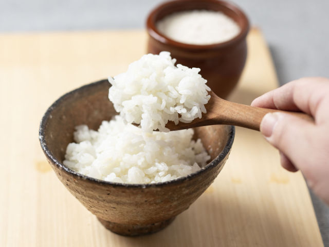 ご飯を茶わんやお椀にごく軽く一杯入れる。