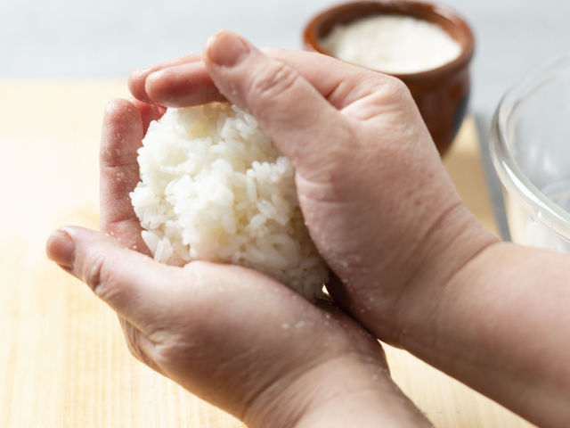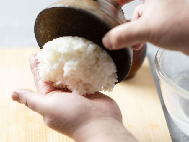 ごく軽く、ご飯粒をくっつけるようにまとめる。