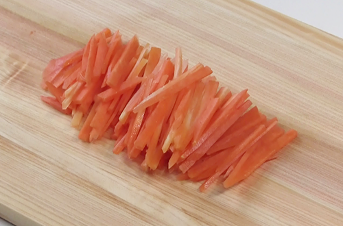 2〜4mmの幅に切ったものを“細切り”といいます。千切りよりも少し太めで、きんぴらなど歯ごたえを楽しむ料理に向いています。