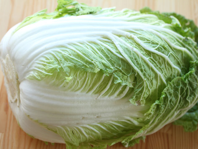 葉がかたく巻いていて、中心部がしまって開いていないものがおすすめ。外は大きく、持った時にずっしり重いものが瑞々しい白菜の証拠。新鮮な白菜は、よく見ると葉に弾力があって、葉っぱは縮緬のようにチリチリと縮れています。