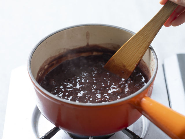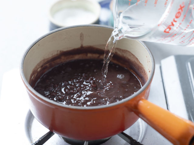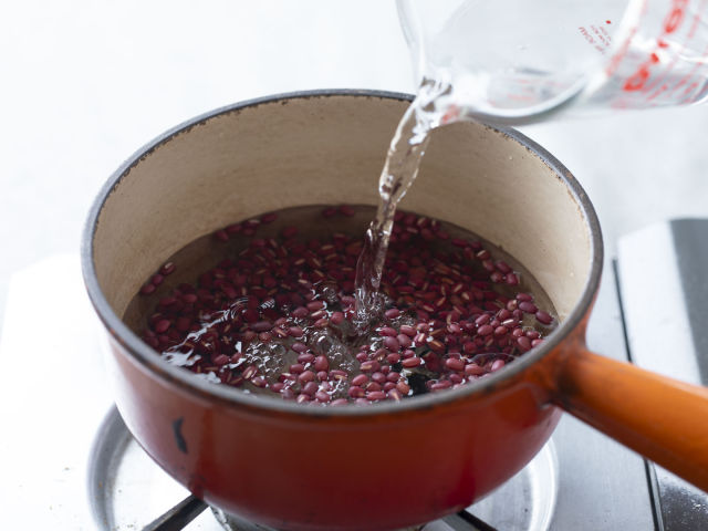 鍋に小豆と4倍量(分量外)の水を入れ、フタをして弱火で60〜90分煮る。