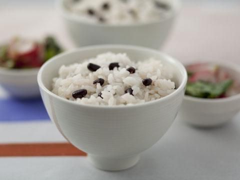 白いご飯にあずき色がきれい。小豆はむくみをとる効果もありますよー。