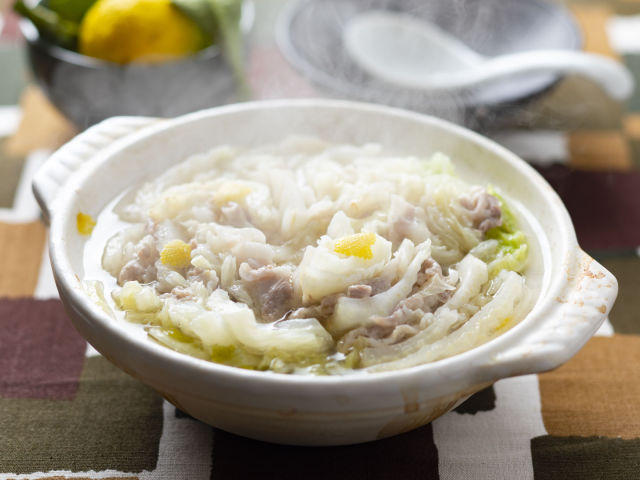 白菜の旨味と豚肉の相性が、それは抜群。さいご汁も食べて下さいね。