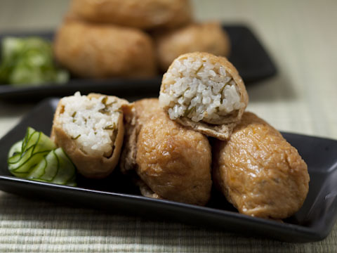 おきつねさん、こと揚げさんの甘辛〜く煮た袋に中に、寿司飯を包みこむ。日本でも東の民は白寿司飯を包みこむのが終了。 西の民はご飯になにかほどこして行かれるのが、一般的なようですね。揚げさんは、しっかり濃いめに煮るのがポイント。