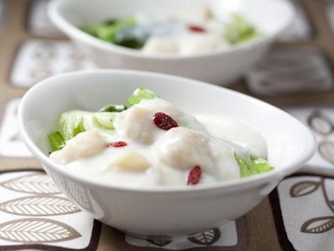 ふっくらとした身にうま味をたっぷり含むほたては、体をしっとり潤します。高たんぱく、低カロリーなのも嬉しい。牛乳は、肺や胃にはたらきかけて肌を滑らかに。チンゲン菜には余分な熱を冷まし血流を調える作用が。白と緑のコントラストがきれい、おもてなしにもぴったりの一品です。